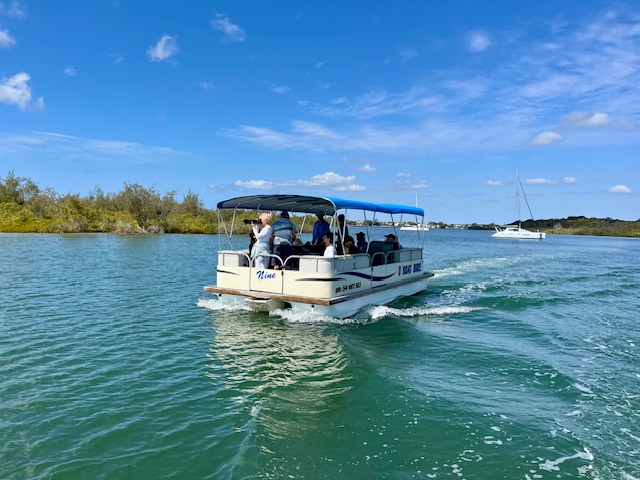 On 9th September 2025 two large pontoon boatloads of enthusiastic photographers had a perfect morning for an outing at the Noosa River Estuary to learn about the shorebirds and take photographs. There were lots of powerful lens, so fabulous images were produced. Many photographers belong to the InFocus group at Coolum. Russ Lamb was our bird expert, he is an ‘in-charger’ for the monthly bird survey and monitoring, which has been carried out for nearly 20 years. He imparts his knowledge in an easy enjoyable manner.