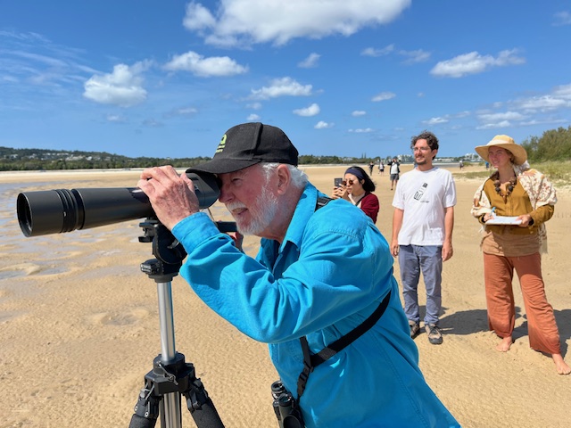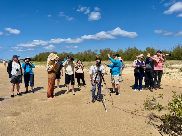 Monday 17th March 2025. After postponing our event due to Cyclone Alfred, on a perfect Noosa morning, we were finally onboard two ‘O’ Boats, under the expert and knowledgeable guidance of Russ Lamb, supported by John Bloomfield. We learnt about the amazing migratory Shorebirds who fly from Alaska and Siberia for our summer and how critical to their return journey are Sand Island and its sand-spits in the Noosa River estuary. It is so important that disturbances by boats, people, dogs must be kept to a minimum. We learnt how to ID the different Shorebird species and the ‘theory’ of how to count them. That is not something to master without LOTS of practice, even with a large Scope and Binoculars.