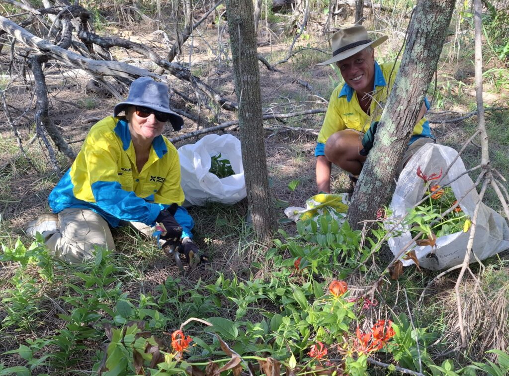 On 17th April, 20 volunteers from Noosa Parks’ Botany Group, NICA and Noosa Bush Beach and Creek Care, went on 2 pontoon boats to Sheep Island Conservation Area. Sheep Island is between Makepeace and Goat Islands. Under the excellent leadership of endemic vegetation experts Robert Price and Joan Heavey, the team surveyed 12 ha of Sheep Island, recording species as they went. Previously, there wasn’t a species list. Species documented by the group included: 12 trees; 5 mangroves; 5 shrubs; 2 ferns; 5 vines, 16 herbs, grasses and sedges, 2 mistletoes and 13 weed species. There were 6 kangaroos.